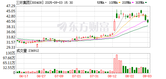 证券日报网讯 9月3日晚间,三环集团发布公告称,截至2025年8月31日,公司通过股份回购专用证券账户以集中竞价交易方式回购公司A股股份5,133,800股,占公司当前总股本的0.2679%。