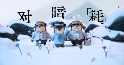 早晨,在吴文聪导演的偶定格动画作品《对暗“耗”》中,黑帮大佬大先生与神秘的商业伙伴上演一场雪中欢叙的场景。
